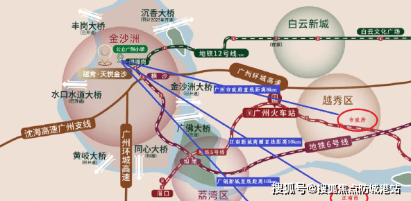 金沙洲地理位置优越,临近荔湾、白鹅潭、白云新城等区域,与广州主城区距离适中,符合大多数人的通勤需求。随着广州地铁12号线的通车以及规划中的沉香大桥未来可能落成,交通状况将得到显著改善,这将进一步提升该地区的吸引力和发展潜力。