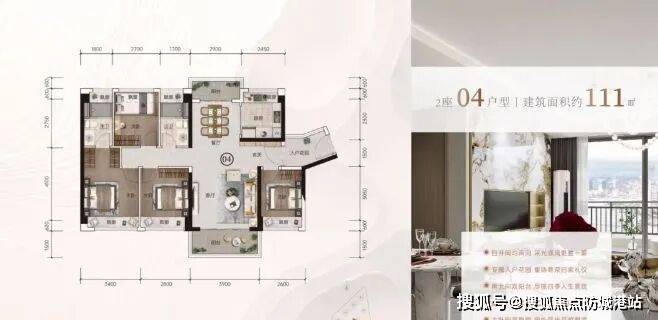 111㎡户型:四房两厅两卫,四开间朝南,拥有98%的超高实用率。空间布局合理,四房设计适合二孩家庭或三代同堂居住。所有房间朝南保证了充足的采光,提升了整体居住舒适度。