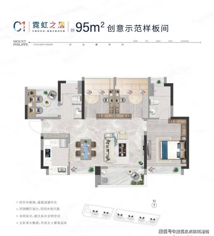 建面约95㎡-4房2卫,户户向南全明采光,全屋对流通风