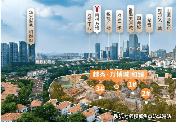 项目距地铁7号线/18号线交汇站南村万博站仅380米(高德实测数据),3站直达琶洲、4站通达珠江新城。18号线东延段工程可行性报告已获批,预计2026年通车后,至琶洲通勤时间将缩短至12分钟,形成“15分钟湾区生活圈”。