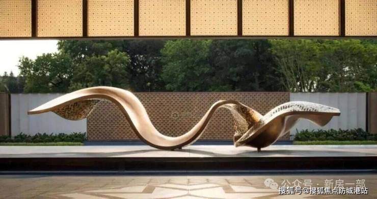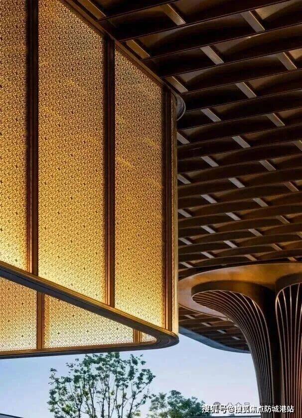 由广东非遗剪纸大师饶宝莲亲手打造的“勇立潮头舟”跃然眼前。整个作品采用铜凿剪纸和金漆木雕结合的工艺,镂空雕刻了羊城八景的纹样。在庭院水景的映衬下,犹如龙舟竞渡,生生不息,寄寓着天曜业主抢占先机,敢为人先的进取精神。