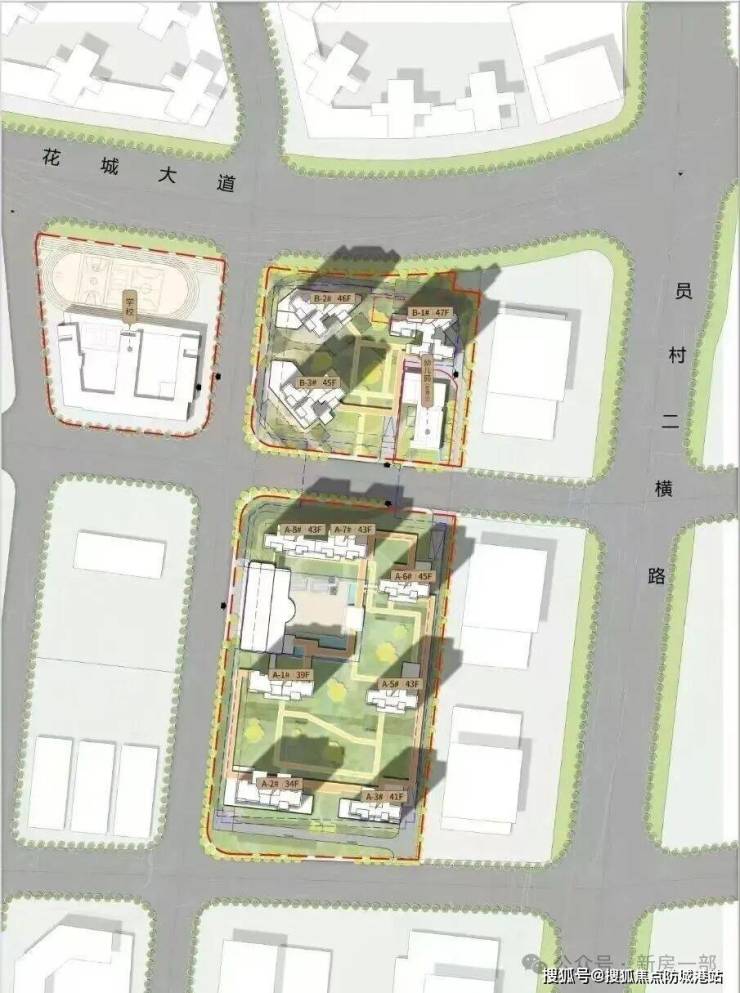 北地块3 栋塔楼,B1 栋 47 层、B2 栋 46 层、B3 栋 45 层;