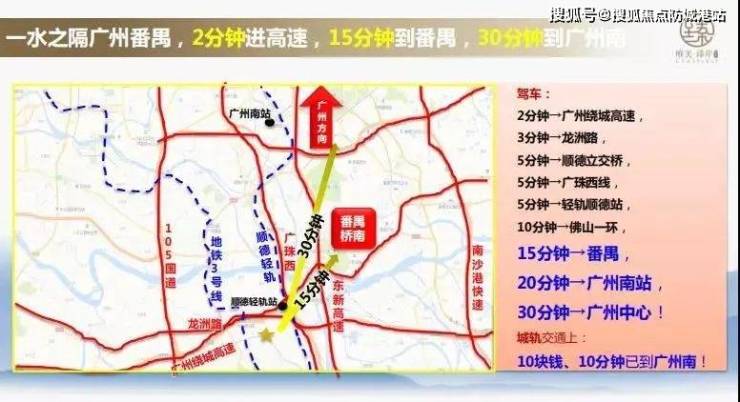 1轻轨——顺德轻轨站毗邻项目(驾车10分钟),轻轨10块钱10分钟到广州南站,畅通广佛同城,无缝接驳港澳5分钟车程→佛山地铁3号线(建设中)的新松站;10分钟车程→顺德轻轨站;15分钟车程→广州番禺