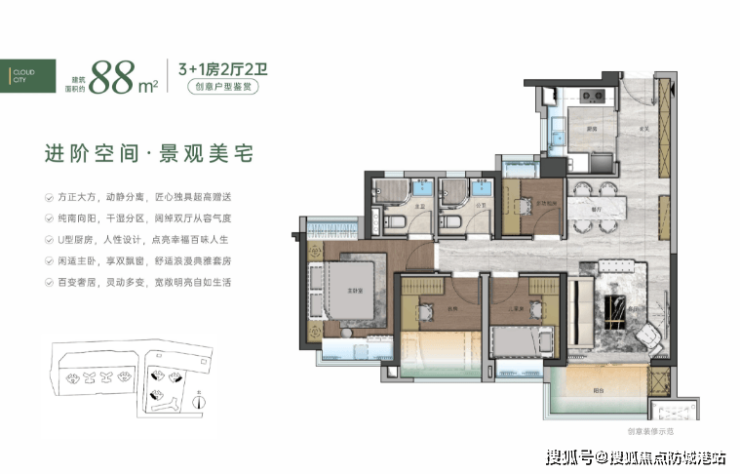 88㎡四房:空间布局合理,采光充足,适合追求舒适生活的家庭。