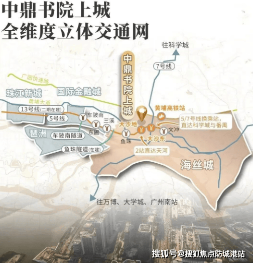 中鼎书院上城距离地铁5号线大沙地站仅约800米,步行即可轻松到达,无需依赖公交或电动车接驳。通过5号线黄金动脉,居民可以无换乘直达金融城和珠江新城,享受便捷的城市生活。此外,项目周边还有广园快速路和黄埔大道两条城市主干道,贯穿广州东西方向,进一步提升了通勤的便利性。