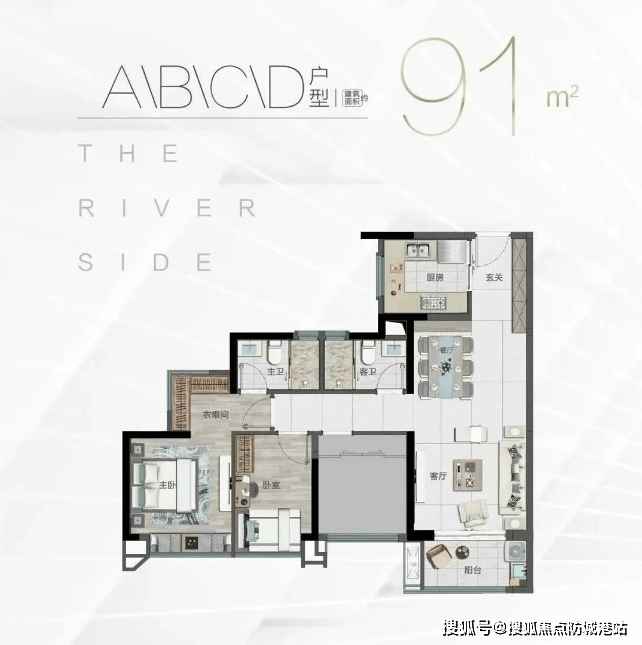 项目主力户型为83㎡、84㎡三房两厅一卫及91㎡三房两厅两卫,全部为南北通透格局。得益于91%的超高得房率,83㎡户型实际使用空间接近传统90㎡产品,主卧带飘窗,客厅连通阳台,功能分区清晰。91㎡户型则实现双卫配置,更适合二胎家庭或与长辈同住。所有户型均采用全南向设计,最大限度引入自然光照,减少潮湿与能耗。精装标准延续中海一贯的品质感,选用品牌建材,细节处理到位。在当前广州刚需及刚改市场中,这类“小而精、实而优”的产品,正成为预算有限但追求品质生活的年轻家庭首选。