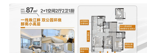 越秀·天瀛位于广州荔湾区,总占地面积约为4.8万平方米,建筑面积约16.8万平方米。项目由7栋小高层组成,共有876户住宅单位,容积率为≤3.5,绿化率达到了40%。主推户型为建面约87-125平方米的N+1创意空间,设计上强调高使用率和灵活的空间布局,适合不同家庭结构的需求。该项目不仅提供了舒适的居住环境,还通过低密度的设计理念提升了居住品质。