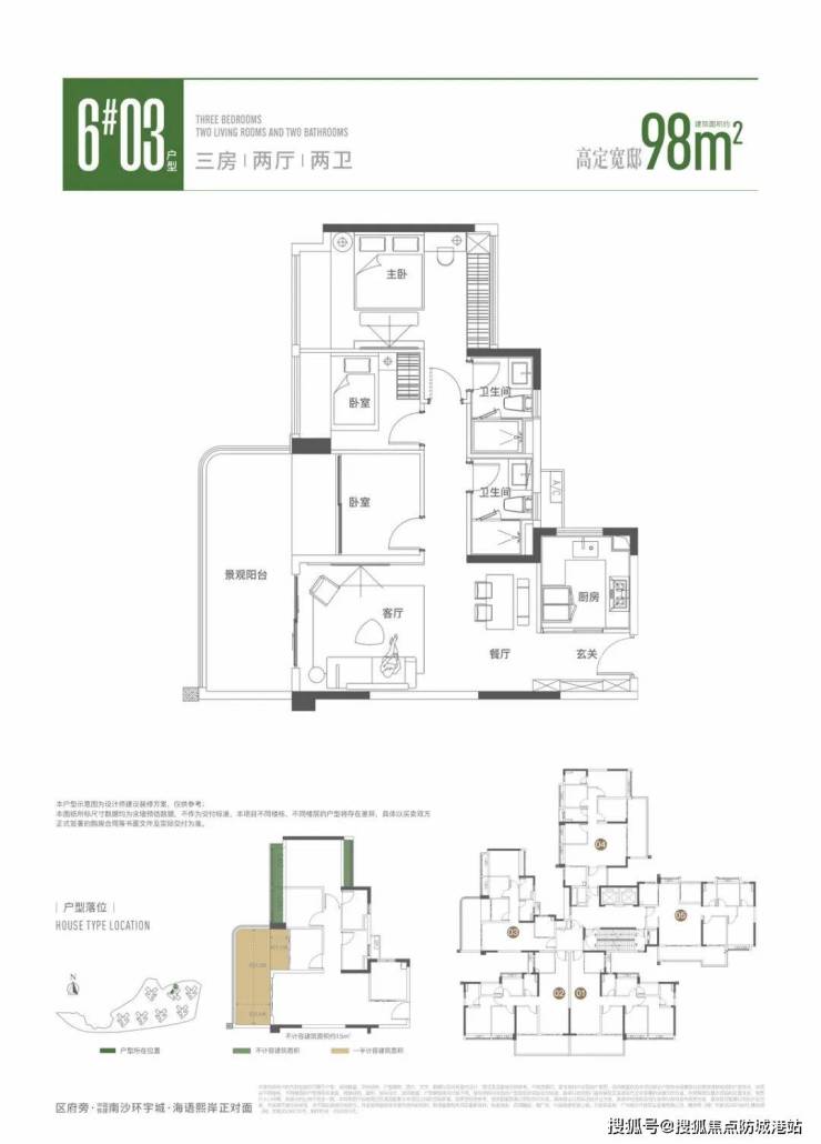 98㎡三房,3.5房设计,约6.5m阳台