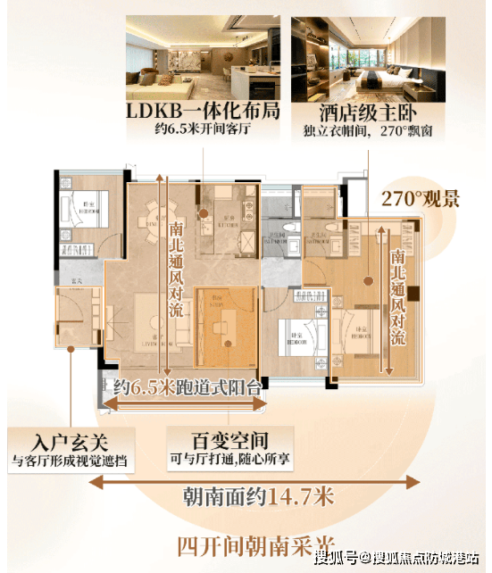 建面约106㎡舒适改善四空间:该户型空间使用率远超同级别面积产品,能满足全周期家庭所需。约14.7米南向面宽,餐客厅+主卧均实现南北通透,清风时时流连,居住舒适度极高。此外,户型设计有独立入户玄关,优化了入户动线,避免开门即见户内,营造出归家的尊崇感。