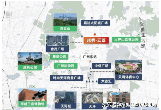 越秀·云萃坐落于白云区核心中轴之上,地理位置得天独厚,距离珠江新城仅5公里,是天河外溢改善人群的优选之地。项目紧邻沙太路和广州大道,自驾出行便捷,可快速直达珠江新城CBD、天河北、琶洲等核心商务区,满足日常通勤需求。
