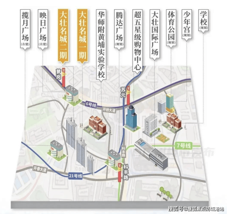 大壮名城名门所在的科学城核心,利好密集释放。教育上,华师附黄埔实验学校已开学,小学仅对口项目招生,12年教育链闭环;商业上,萝岗万达广场等已成熟,大壮映日广场封顶,超五星级购物中心规划落地;交通方面,6、7、21号线三地铁交汇,出行便捷度持续提升。
