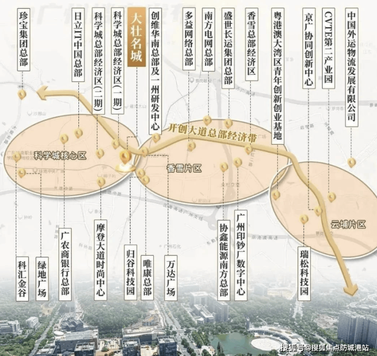大壮名城名门位于广州科学城核心,这里是湾区创新政策的重要实践地,全国科技城排名第二,聚集了南方电网总部、视源电子等80%以上的黄埔上市公司,“三集群两高地”产业布局成型。作为科学城产城融合的标杆,项目以400万方体量构建“居住+教育+商业+产业”生态。