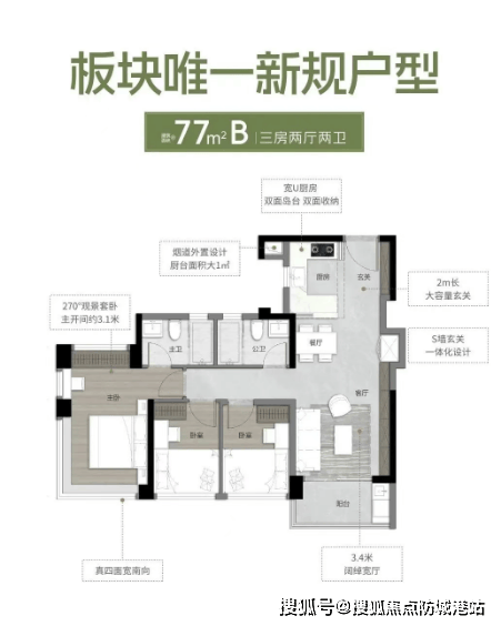 万科·檐屿城主推建面约77-135平方米的三至四房产品,实用率最高可达138%,远超市场平均水平。例如,约88平方米B户型,拥有南向三房两厅两卫,主卧配备270°全景飘窗,并带有梳妆台和衣帽间;约103平方米户型则提供独立入户花园和约7米长的通铺阳台,带来无与伦比的观景体验。每种户型都充分考虑到了空间利用率和居住舒适度,无论是年轻夫妇还是大家庭都能找到合适的居住方案。