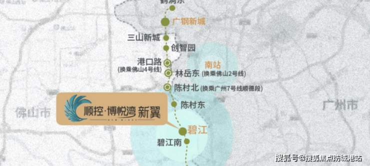 顺控·博悦湾地理位置优越,紧邻广州南站,直线距离仅约7公里,享受全国客流量最大的交通枢纽辐射。周边有多条高速公路如广珠西线高速、东新高速等主干道接驳广佛各核心板块,并有广州地铁7号线和规划中的佛山地铁11号线,实现广佛“半小时生活圈”。