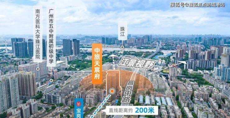 中旅天宸府的位置就在其中,它处于海珠老城区昌岗中路与宝岗大道交汇处。