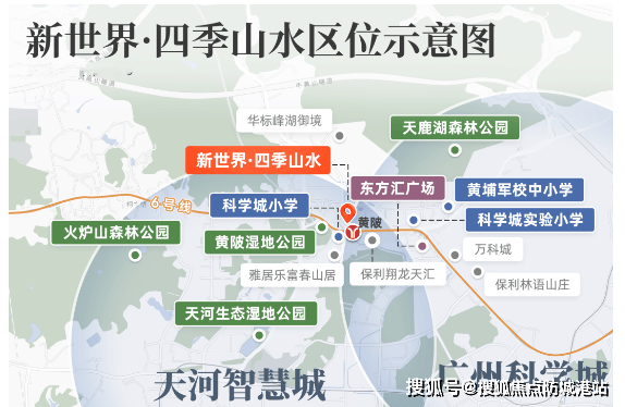 新世界・四季山水地处天河智慧城与黄埔科学城交汇处,占据广州东进第三科创中轴核心位置。两大板块作为广州科创产业高地,聚集超 5700 家高新企业,吸引超 70 万精英人才,形成强大的居住需求支撑。智慧城聚焦人工智能、数字经济,科学城则主攻生物医药、新一代信息技术,双城产业互补,为项目带来稳定的高净值客群。