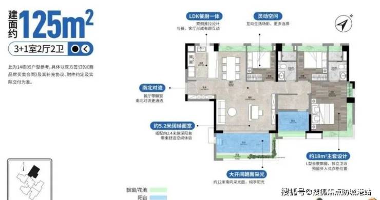 125平四房两卫,改善四房,18方豪华主套,L型全景飘窗,12米南向采光