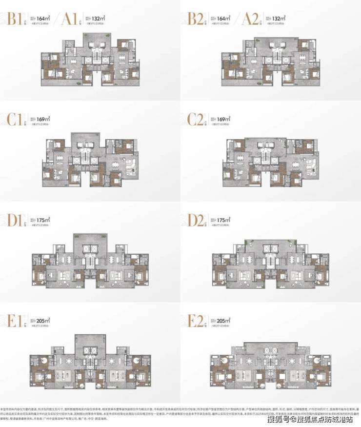 开盘户型:132㎡三房、164㎡四房、205㎡四房。
