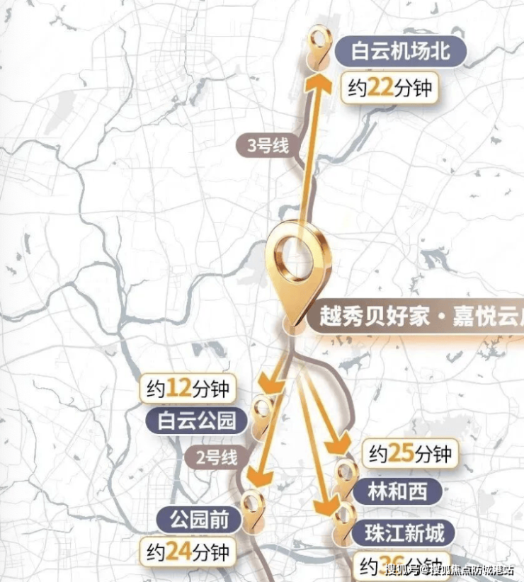 Q5:项目的交通状况如何?距离地铁站多远? A:项目是真正的“地铁上盖”TOD项目,楼下就是地铁2号线、3号线和14号线交汇的嘉禾望岗站。通过该枢纽,可0换乘直达珠江新城、天河北、白云新城、广州南站、白云机场等核心区域,通勤效率极高。