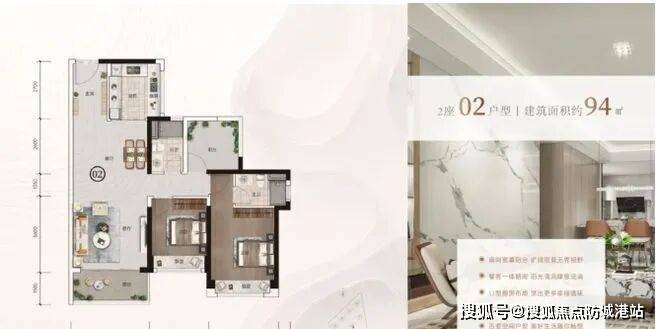 94㎡户型:2+1房两厅两卫,三开间朝南,实用率达93%。紧凑而功能齐全,对于预算有限但又追求江景与品质生活的购房者来说,是理想选择。多出的一房可作为书房或儿童房,满足不同生活场景需求。