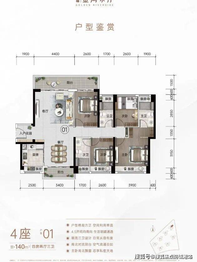 140㎡户型:四房两厅三卫,双主套设计,约7米一线望江大阳台。双主套设计满足家庭中不同成员对独立空间的需求,望江大阳台则提供了绝佳的景观视野,享受江景生活的惬意。