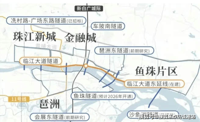 交通方面,琶洲低空飞行运营中心将在年中投入使用,从琶洲直飞白云机场仅需9分钟。未来还将开通珠海、深圳、澳门等城际低空航线,日均飞行次数预计达到100-150次。同时,新白广城际铁路也将在今年开通,缩短琶洲与金融城之间的距离至一站之遥。去年开通的地铁11号线,已经实现了这一点。未来,随着琶洲与鱼珠隧道以及琶洲与珠江新城隧道的开通,一江两岸将被彻底缝合。