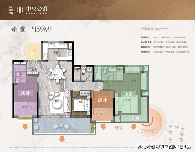 保利·招商·华发中央公馆以高标准精装修交付,所有户型均经过精心设计,充分考虑了居住者的实际需求。例如,建面约81-159㎡的多种户型设计,采用了超长面宽、南北通透、270°双面采光等多种设计理念,确保每一户都能享受到充足的采光和通风。特别是159㎡的楼王户型,纯南朝向,五开间朝南,约7.7米宽景阳台,无遮挡视野,望中央园林,为住户提供了极致的居住体验。