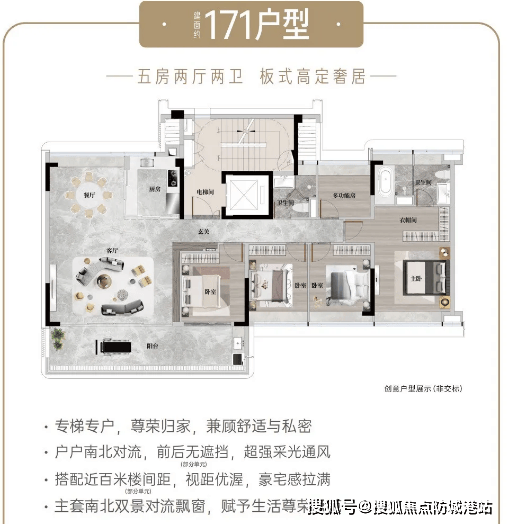 建面约171㎡奢适五房:低密8F小高层产品,主打长隆头排景观,北望长隆野生动物世界,南瞰北美暖林境,景观资源得天独厚。采用专梯入户设计,尊享私密空间,彰显尊贵身份;五房布局精准适配三代同堂家庭,每个房间均预留充足活动空间,避免拥挤,同时客厅宽敞明亮,可作为家庭社交核心区域,兼顾实用性与仪式感。