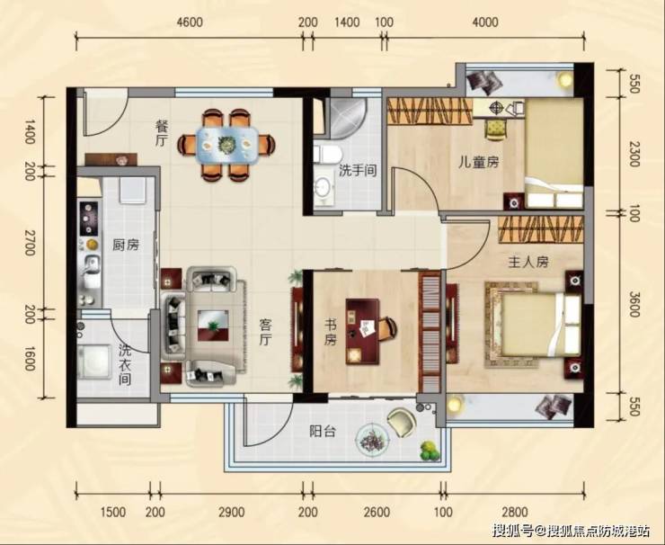 🌟儿童房、书房、主人房一字排开动静自成一区