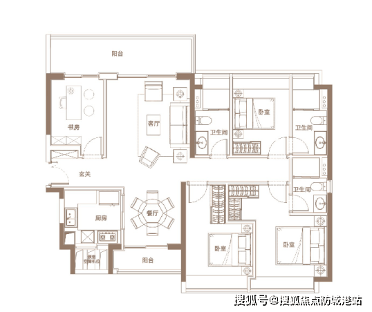 而此次推出的128㎡户型的样板间,属于全明四房的结构,足够三代同堂。经过科学的空间设计和人性化的附赠,做到了主卧套房设计的4房2厅2卫,4开间朝南,采光、通风舒适度极佳。