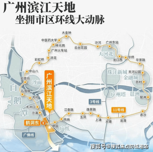 项目紧邻地铁11号线鹤洞东站,并与佛山11号线相连,实现了真正的地铁上盖出行。此外,项目还规划了3横2纵的大路网和公交站场,结合水上巴士等多维交通方式,形成了半小时城央生活圈和1小时湾区生活圈。其中,11号线更是老城区的换乘之王,可换乘多达13条地铁线,连接天河、白云、越秀、荔湾和海珠等区域。