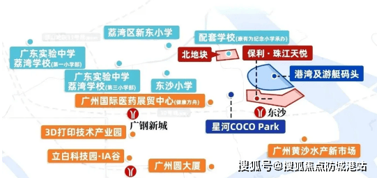教育配套完善,项目自身配建 12 班幼儿园,按街道划分对口康有为纪念小学(2025 年 9 月将新增 6 个班),周边还有广钢学校、华师附荔湾小学、真光实验小学等优质校,构建全龄教育体系(具体入学政策以教育局公示为准)。商业配套能级领先,背靠总投资超 300 亿元的广州国际健康港,一期 90 万㎡健康方舟已运营,12 万㎡星河 COCO Park 开业,引入星巴克、奈雪的茶、影院等品牌;周边规划广州首座万象城、滨江太古商业,未来将成顶级商业带,内港湾滨水商业街、广钢花湾天地等现有配套也可满足日常需求。