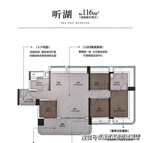 116㎡四房两卫:中等户型,适合追求更高舒适度的家庭。主卧配有独立卫生间和衣帽间,提升了居住体验。