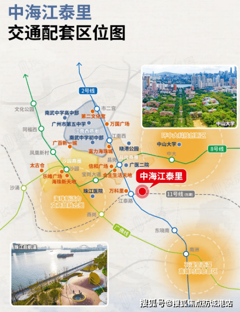 中海江泰里地理位置优越,距离地铁2号线及11号线交汇的江泰路站仅150米,步行可达。此外,项目周边还有多条公交线路覆盖,自驾出行也有江南大道、工业大道等五大主干道可供选择,便捷连接广州市内多个重要区域。