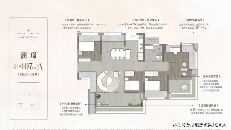 项目当前在售房源均价4.8万元/㎡,相比周边二手房价存在明显倒挂优势。主推户型中,125㎡四房户型采用"四叶草"布局,四个卧室分居四角,最大程度保证私密性;143㎡户型配备双主套设计,满足多代同堂居住需求。所有户型均实现"三开间朝南+南北双阳台"的通透格局,得房率高达85%。