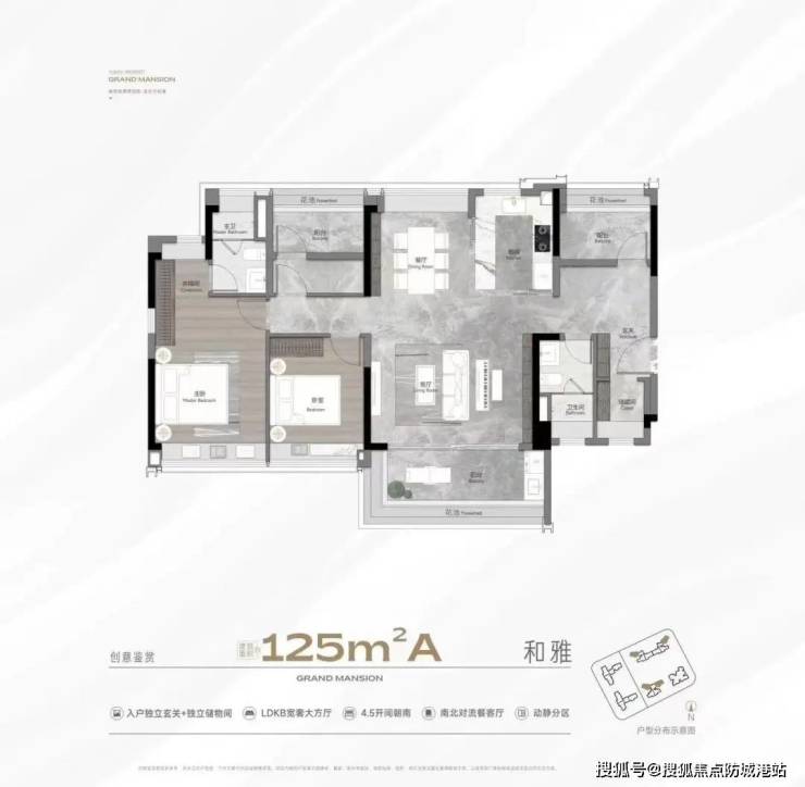 项目主推建面约140-188㎡四房户型,使用率约95%,空间布局科学合理: