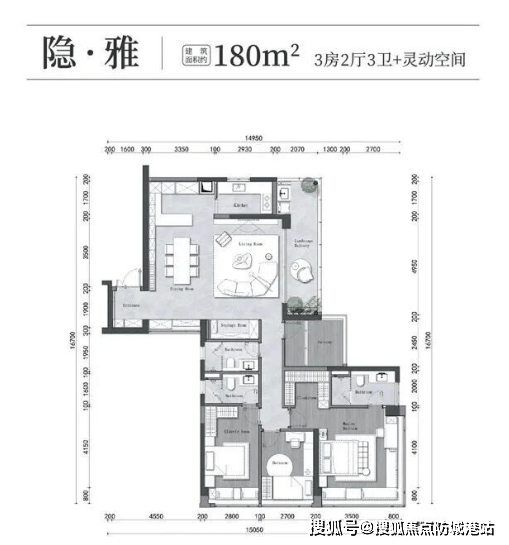 ### 户型四:建面约180㎡ 四房两厅三卫(终极改善型)