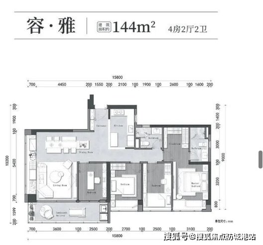 面积与房间数量:建面约144㎡,四房两厅两卫,定位高端改善,适合追求高品质生活的四口之家或多代同堂家庭,空间宽敞大气,舒适度高。