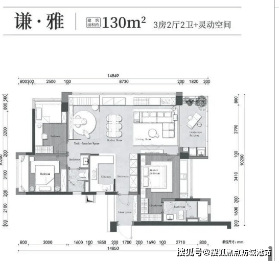 面积与房间数量:建面约130㎡,四房两厅两卫,适合四口之家或多代同堂家庭居住,空间宽敞舒适,能够满足家庭的多样化需求。