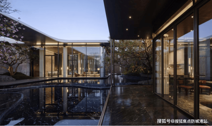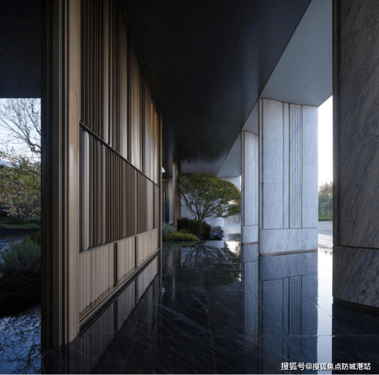 建筑、自然、艺术完美结合的艺术品级门庭,摒弃传统门庭的界限感,通过材质的微妙变化、空间的层层递进,在开放与私密之间找到精妙平衡,成为社区内外的缓冲场域,繁与静、快与慢,都在归家这一刻无界过渡。
