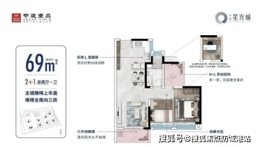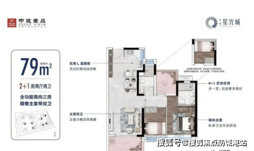 中建星光城目前在售户型以刚需三房为主,虽与当下新规楼盘相比,得房率处于合理区间,但凭借南向布局与低总价优势,成为预算有限家庭的优质选择。户型面积适配刚需需求,布局方正合理,空间利用率高,能满足三口之家或三代同堂的居住需求。