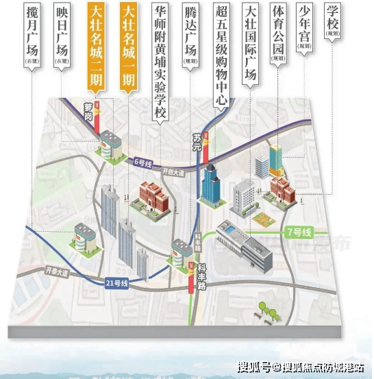 大壮名城的核心竞争力始于其无可替代的区位优势 —— 占据科学城 “政务、商贸、发展、教育” 四大中心交汇点,堪称板块 “天花板” 级地段: