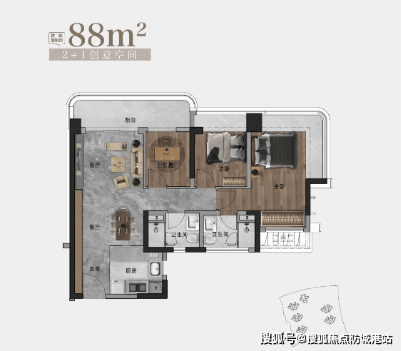 户型实用率超 100%:得益于广州建筑新规,二期户型实用率远超一期的 80%,通过宽阳台、飘窗等拓展空间,实际使用面积大幅增加。产品涵盖 88-143㎡三至四房,全系标配 1.5 米宽、5.5-6.4 米长的巨幕阳台及 L 形 270° 飘窗,即便 88㎡小户型也能享有 5.7 米阳台与 5 米飘窗,空间利用率极高。