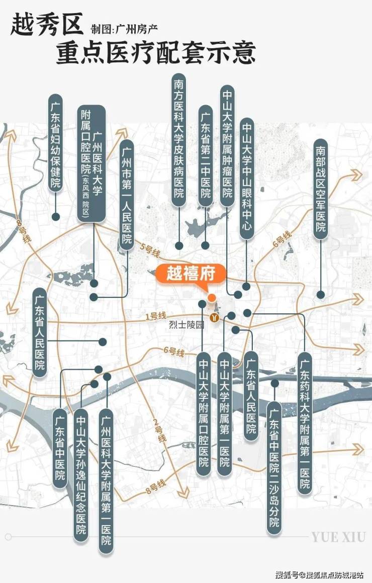 医疗配套:越秀区内 14 家知名三甲医院车程 10 分钟内可达,占全市数量约 40%。步行 5 分钟范围内汇聚医科大学附属第一医院、中山大学附属第一医院等 4 大甲级医院,专业医疗团队与先进设备,为家人健康保驾护航;