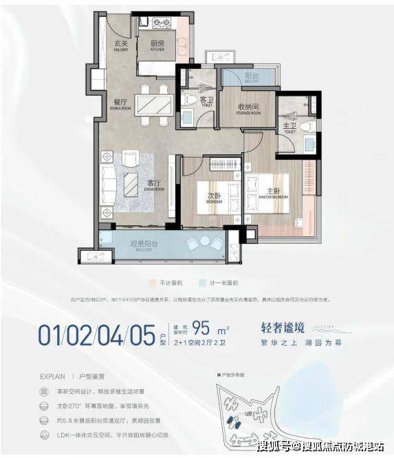 7.2m 临湖阳台,进一步拉近了业主与湖景的距离,可于此亲近自然,放松身心。超 270° 环幕主卧,不仅采光极佳,还能让业主在休息时欣赏到美丽的湖景,营造出浪漫温馨的居住氛围。该户型无论是空间尺度还是景观视野,都达到了较高水准,为追求极致湖居生活的业主提供了理想之选。