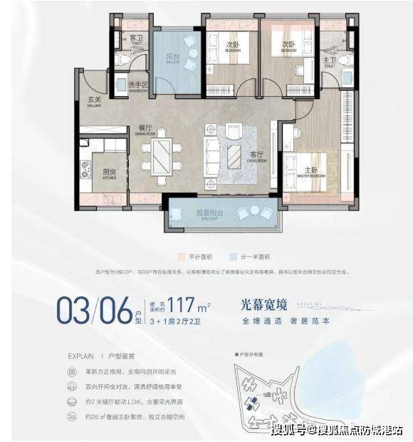117㎡的户型设计巧妙,实现了对流四房两卫,并且赠送空间超多,进一步提升了居住的性价比。每个空间都可实现南北对流,空气流通顺畅,让室内时刻保持清新。360° 全开间采光,无论是客厅、卧室还是其他功能区,都能充分享受阳光的照耀,营造出明亮通透的居住环境。