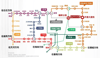 便捷交通:虽然距离最近的地铁站香雪站大约3.8公里,但小区门口设有黄埔有轨电车2号线开源大道东站,业主可以乘坐有轨电车前往香雪站换乘地铁6号线,轻松抵达天河、海珠、越秀等地。未来规划中的地铁6号线东延段和23号线将进一步提升该地区的交通便利性。