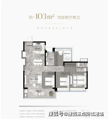 103平方米四房两厅两卫:紧凑实用,适合年轻家庭首次置业。