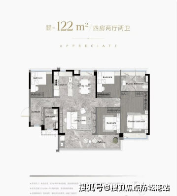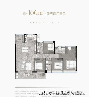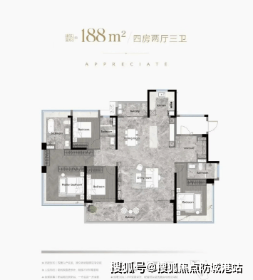 188平方米四房两厅三卫:豪华大气,专为追求高品质生活的家庭设计。