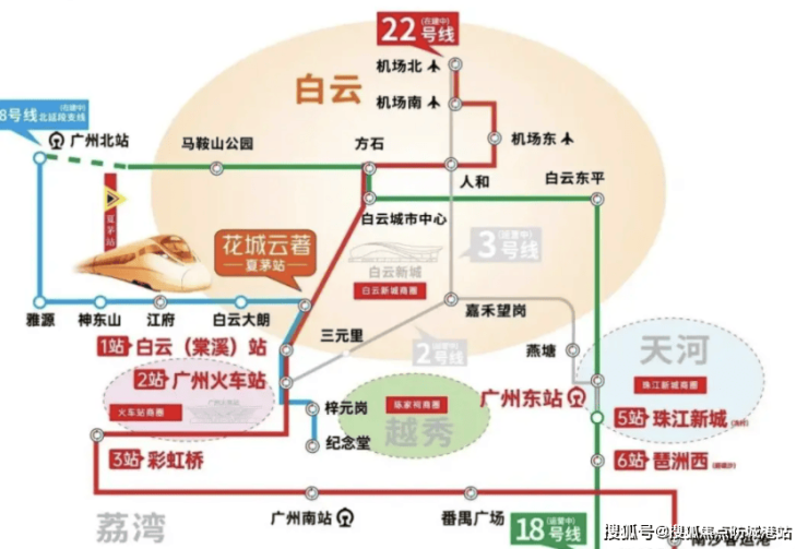 先说说地铁22号线,这条线路是广州的南北大动脉,时速高达160公里,速度非常快,开通后,1站就能抵达白云站,3站就能进入老荔湾,换乘18号线后,5站就能直达珠江新城冼村站。要知道,珠江新城是广州的核心商务区,很多人都在那里上班,要是住在公交珠实花城云著,每天通勤时间就能控制在30分钟以内,不用再忍受长时间的通勤之苦,每天能多睡半个小时,幸福感直接拉满。